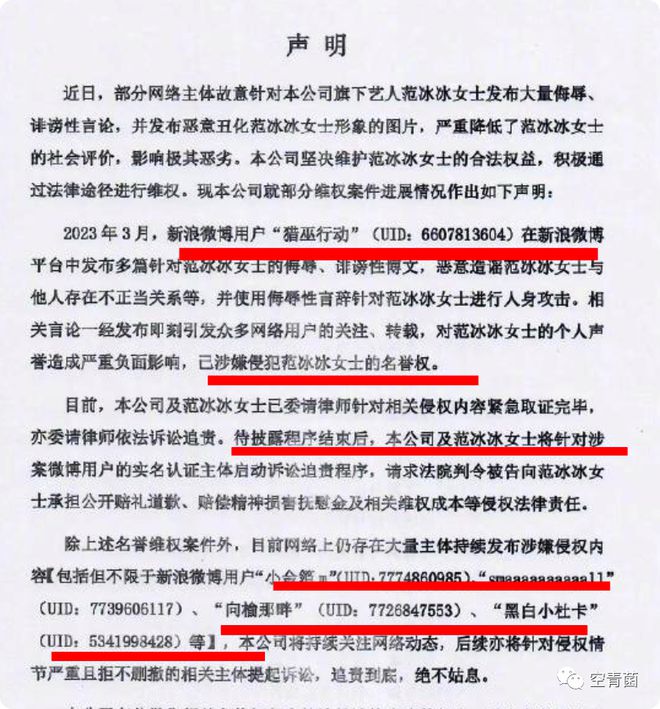 6号的时候,某冰工作室直接发了一则声明,并且表示已经把几个粉丝起诉到了法庭上。
