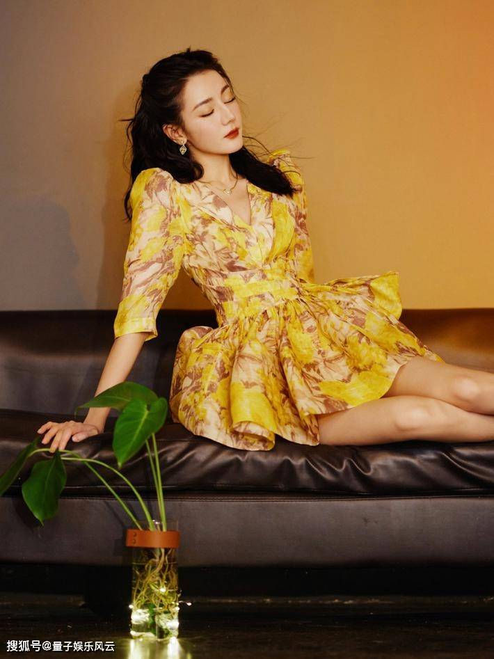 原标题:热巴身穿黄色印花短裙,搭配复古蓬松卷发恬静柔美,妆容精致五官迷人