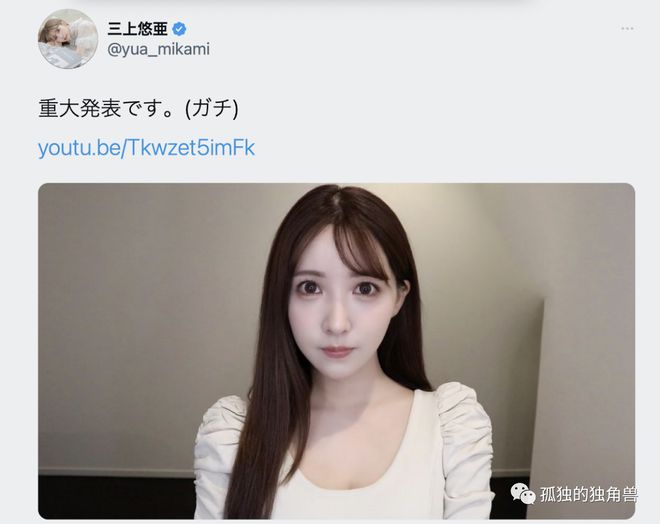 没错,从去年9月就确定好的事,三上悠亜终于说了ー这就是为什么去年11月到现在,每次三上说有重大发表我都转推的原因;不过坦白说啦,我也很意外她这么快就讲了,因为之前有听说她决定在8月的时候才要和大家说(因为她是8月生日),所以这次看到她又说要重大发表我索性就不转推了,想不到她突然就讲了〜