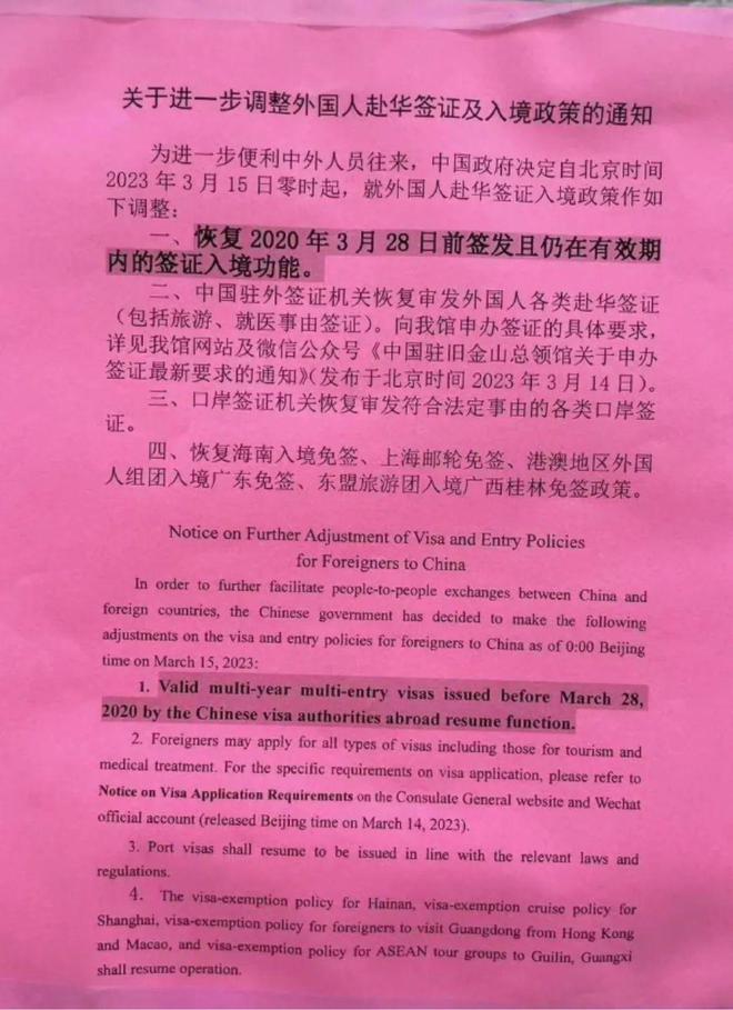 - 恢复2020年3月28日前签发且仍在有效期内的签证入境功能(外国人赴华的10年多次往返签证恢复了)