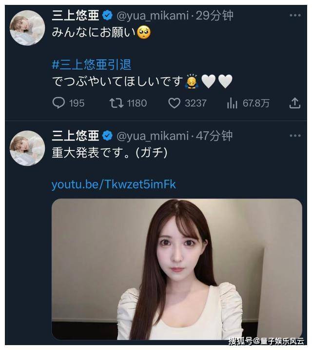 随后,三上悠亚在社交平台上证实了这一消息。三上悠亚还表示感谢大家这么多年的支持和厚爱,并表示退役后要和圈外男友结婚,震惊了很多网友。