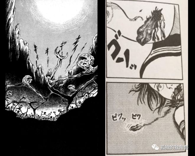 主角稗田礼二郎追踪的妖怪是一种与地球万物分庭抗礼的黑暗生命体,它们像大自然的影子,走上截然不同的进化道路,隐匿在历史与日常生活的夹缝中。它们的模样也跳脱我们对生物的印象,呈现未知的诡异氛围。