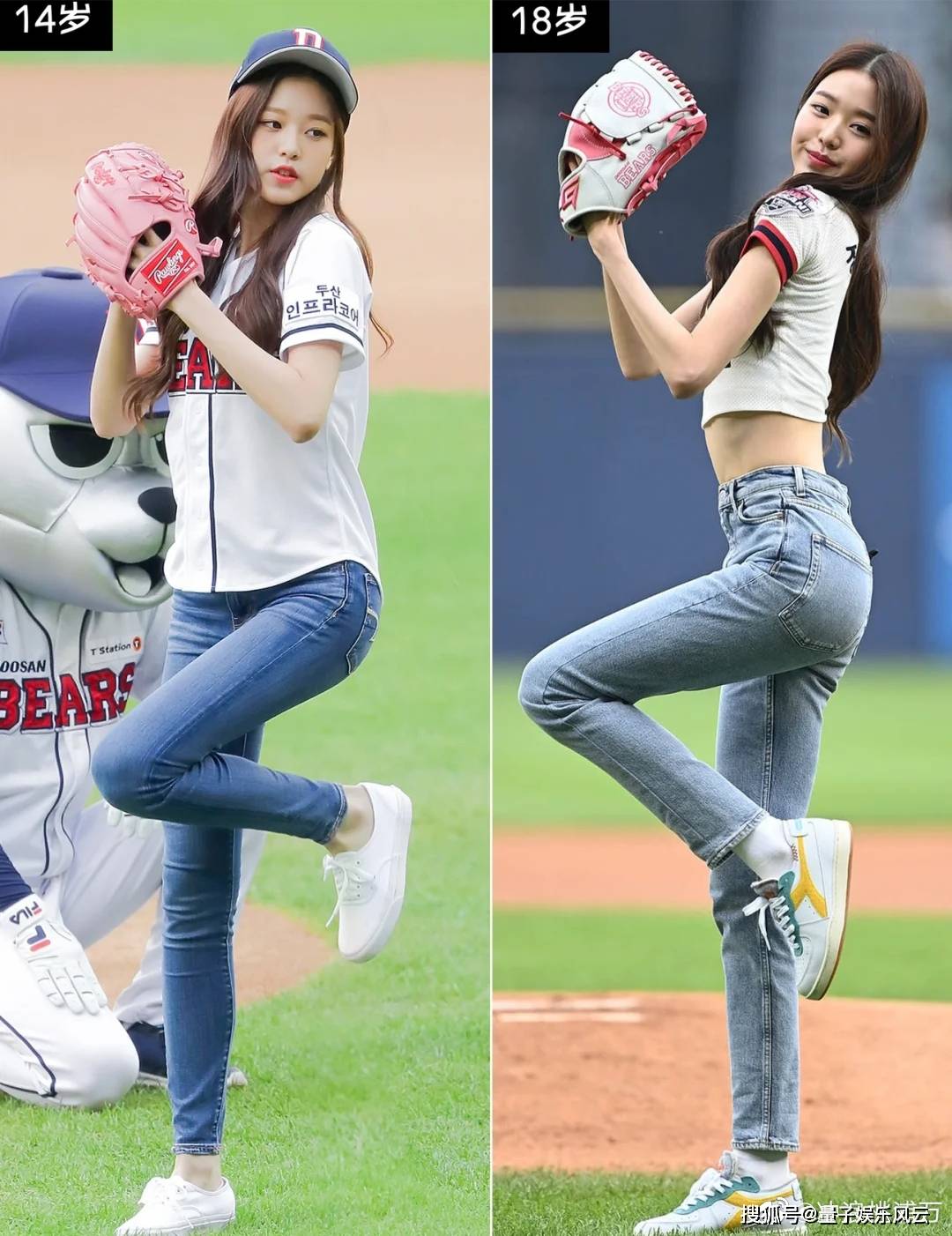 张元英14岁与18岁棒球⚾赛开球照对比,普拉提果然不是白练的,身材比例更好了。