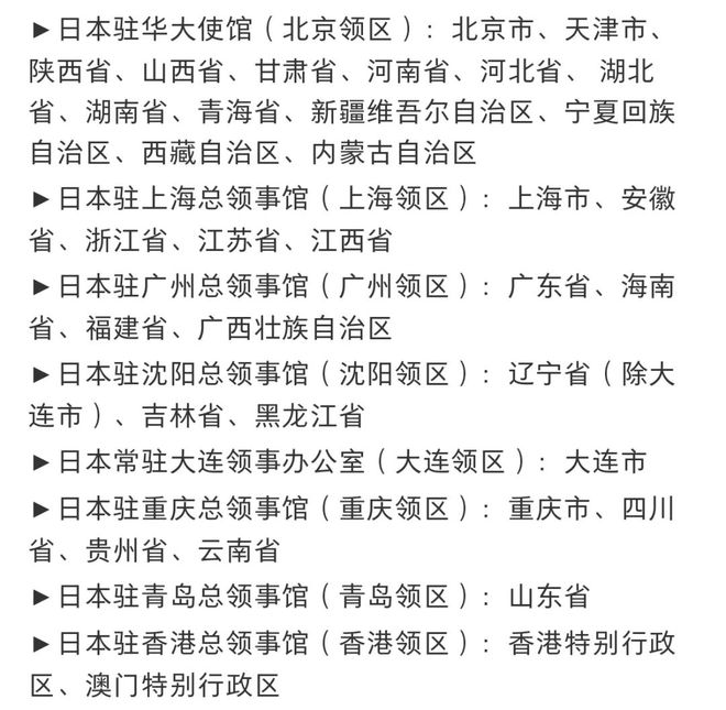 日本签证领区划分如下: