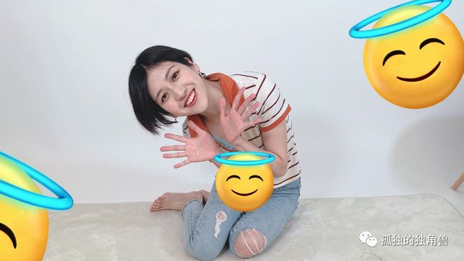 削得很短的头发感觉很Boy,但全身入镜就知道片商是想要凸显她的时尚感,小小的巴掌脸、纤细修长的苗条身材