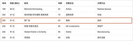 公开资料显示,复星国际是上海富豪郭广昌旗下上市公司,其曾屡次登顶上海首富。《2020年胡润全球富豪榜》显示,郭广昌以91亿美元(折合人民币636.09亿元)的身价位列第202位。