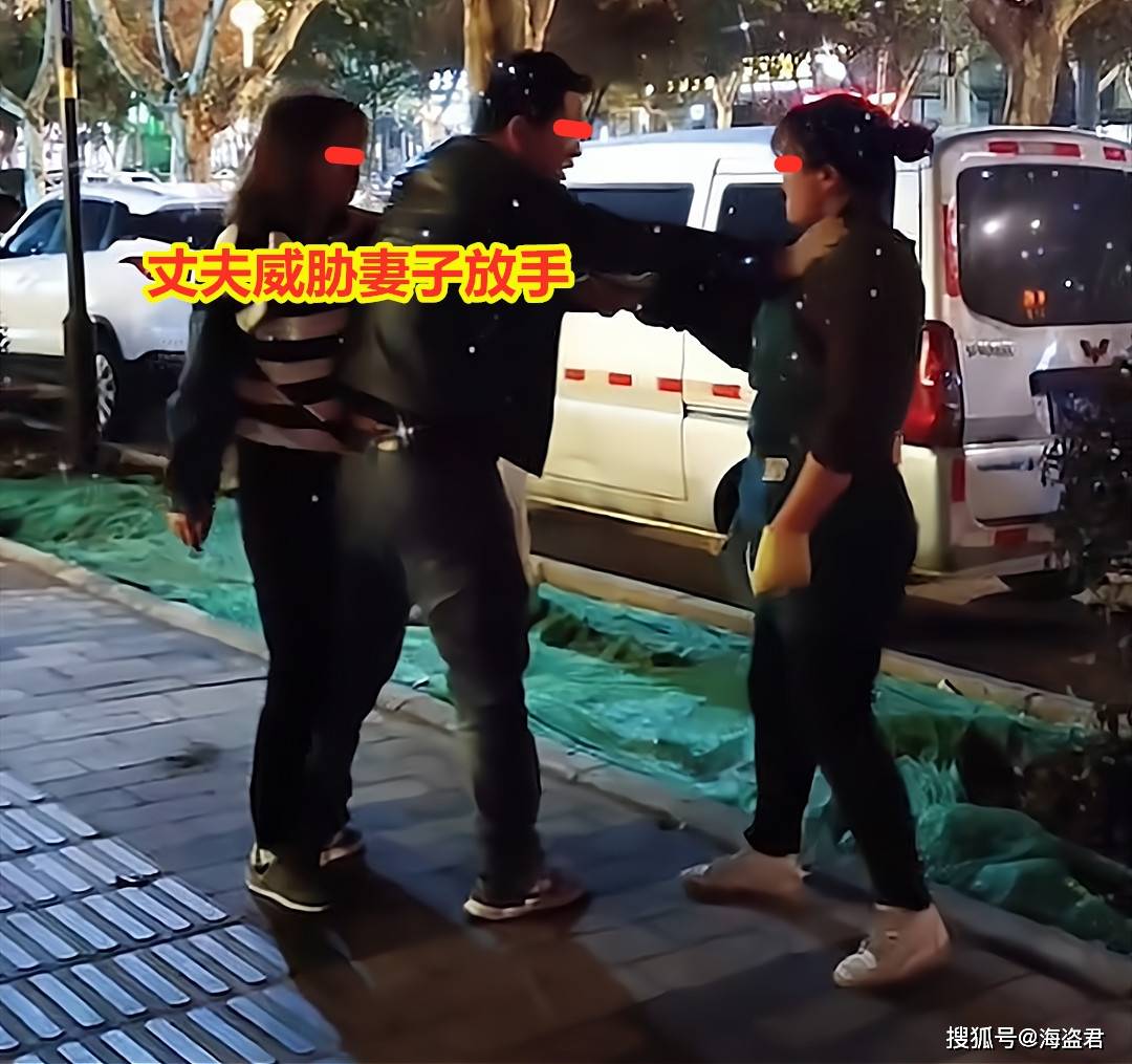 男子原本左手是放在妻子锁骨附近,属于带掐带隔开一定距离的性质,身体姿势有些别扭,不方便拉开妻子拽情妇的手。