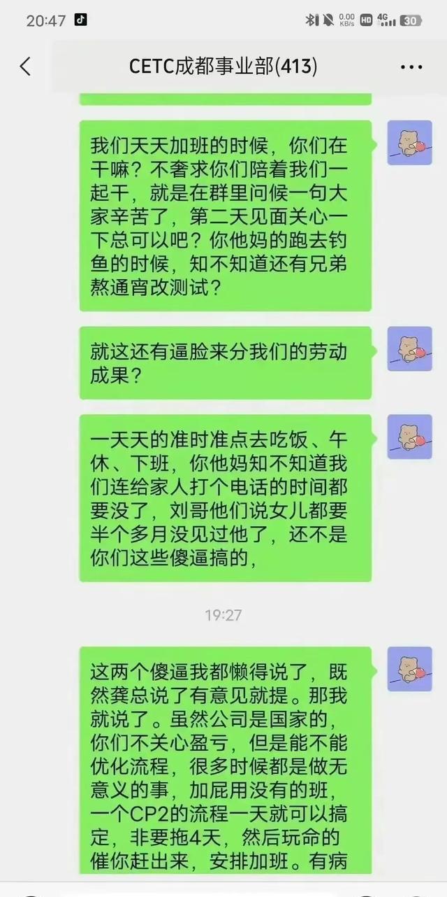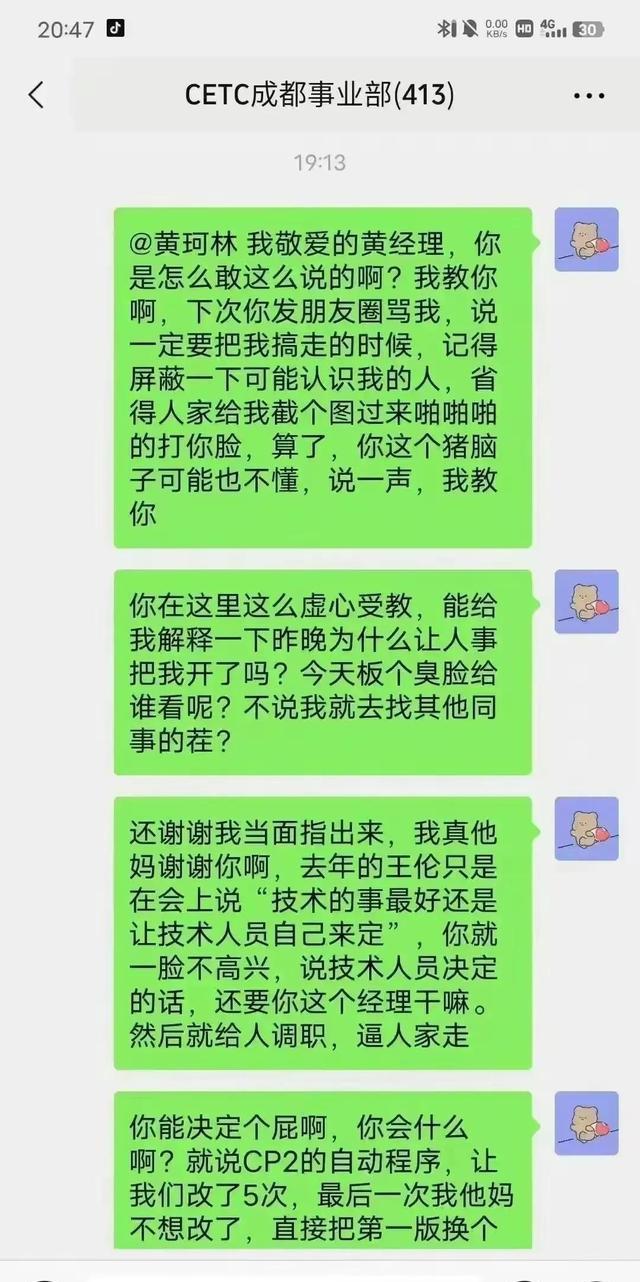 作为带头大哥的陈同学应该知道了自己的结局,索性一不做二不休,既然已经撕开了脸面,就无所畏惧了!于是陈同学在有着四百多的大群里肆无忌惮的发泄着自己内心的不满,同时把两位领导的所作所为给发了出来。同时也让更多的人知道了事情的真实原因,以及领导平常是怎么对待员工的!