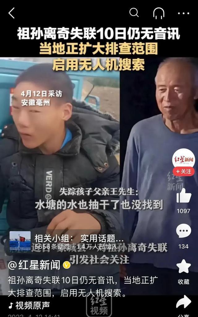 安徽蒙城,75岁爷爷和18岁孙子离奇失踪十天,家里人都急哭了
