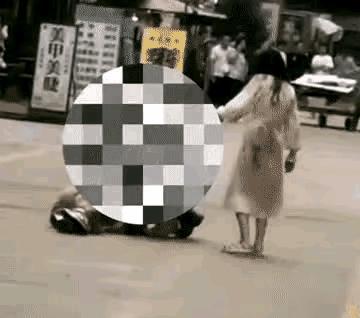 一名长发飘飘,身穿白色长裙的女子疑似一名男子亲密逛街,被尾随而来的女子丈夫捅倒倒地,女子在旁边急得直跺脚,却也于事无补。