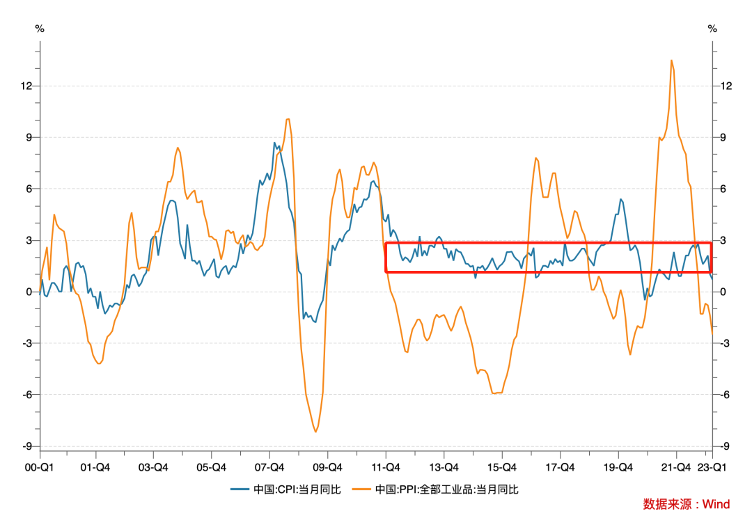 图:2000年-2023年PPI与CPI走势,来源:wind,智本社