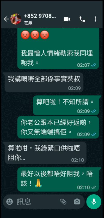 填词人因葵 发文为周永恒发声,更斥有人不停讲大话:清官难审家庭事,但一个女人可以不停讲大话,污蔑她老公,还要到处说给她老公的朋友听,说她老公打老婆。这些照片、截图内容是今晚人家老婆同我的对话,其他受伤的照片,是她老公早前入医院的证据。