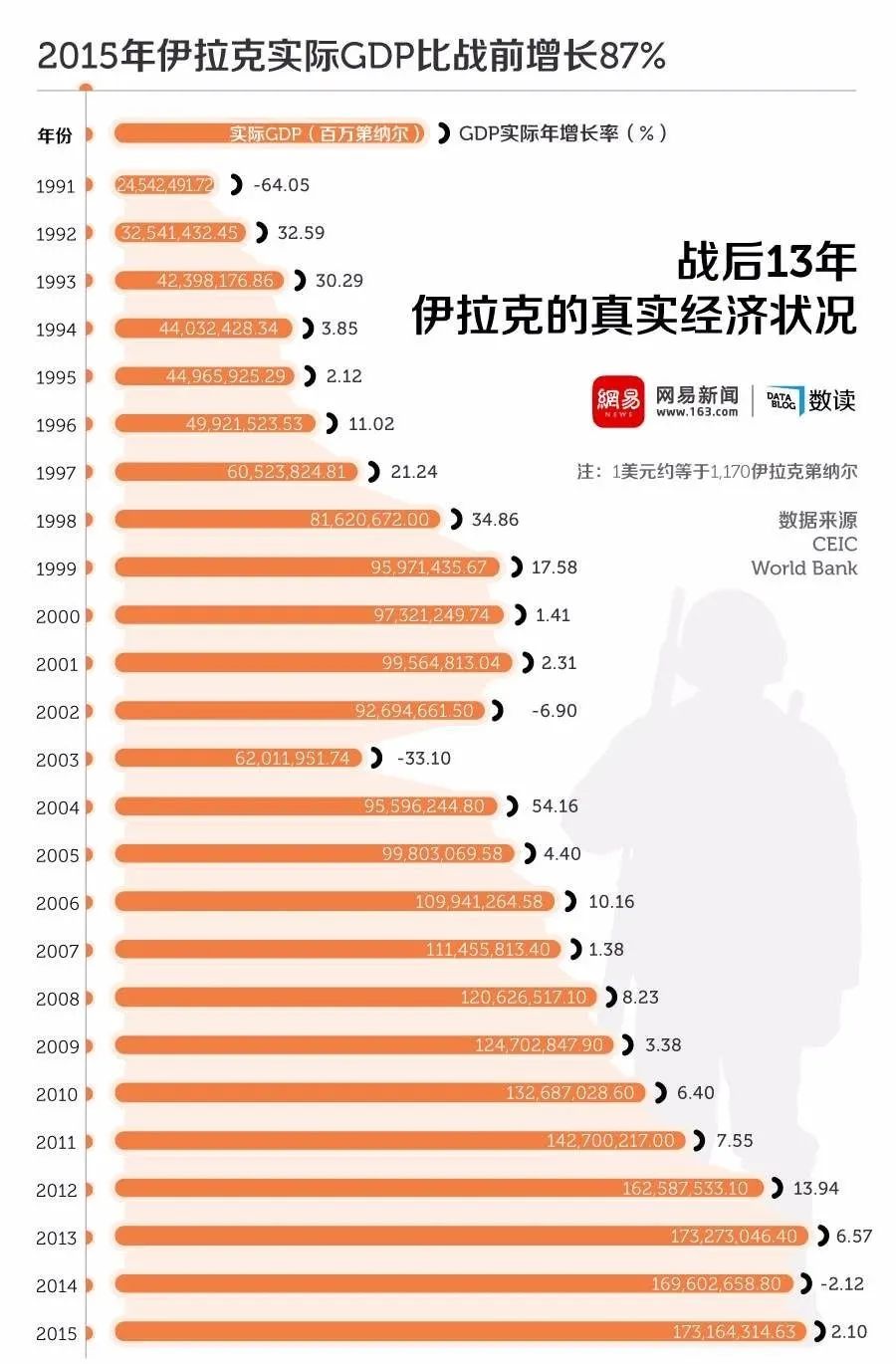 当时一些媒体自媒体津津乐道的“萨达姆时代的繁荣富裕”,那只存在于想象之中。八十年代伊拉克的人均GDP不过是全球平均水平上下,增长极为缓慢。经济水平在海湾石油国家中垫底。黑金加持的日子还算过得去,却远远谈不上富裕。更为严峻的是,经历了长期战争的透支,伊拉克政府财政非常糟糕,六百多亿美元的外债相当于伊拉克政府三年的财政收入。按照任何国际标准,萨达姆政府都已经陷入了财政破产。好在伊拉克的主要债权人是逊尼派兄弟的海湾国家,并无逼债之虞。1989年到1990年间短暂的和平时间,伊拉克的经济开始快速恢复。本该享受和平时期的石油红利,萨达姆却选择了还债不如赖债、赖债不如“自助取款”的奇葩路线。弱小但富裕的邻国科威特就成了萨达姆相中的“自动取款机”。