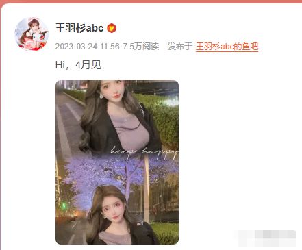 在稍后的时间里,王羽杉陆陆续续的继续发布一些旅游照和自拍,直至今年3月份,她突然宣布“四月见”!