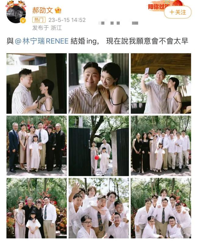 据了解,今年33岁的郝劭文迎娶了内地姑娘林宁瑞,并陪对方定居杭州。
