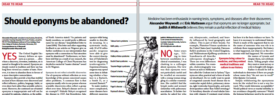 韦格纳的调查结果出来之后,便在学术界引起了轩然大波。关于是否保留“韦格纳肉芽肿病”这一名称的讨论,也呈现两极分化的趋势。在调查文章发表后不久,一位英国医生在《柳叶刀》发表评论:“虽然相关证据还很薄弱,但患者可并不希望自己所患的疾病跟纳粹扯上任何关系。”美国梅奥诊所的一名医生在《柳叶刀》质疑:“在缺少确切证据的情况下,作者就试图玷污韦格纳的名声。”两位调查报道作者在《柳叶刀》回复称,“我们已经最大的可能做到公平公正,并尽力维持文章内容的完整性…… 我们了解不是每个人都同意这种观点,也意识到不同观点之间会有交锋。因此我们希望,大家能按事实说话,公正公开地交流这件事情。”《英国医学杂志(BMJ )》还专门开了一个专栏,讨论是否应该保留“以人名命名的疾病”。但韦格纳没有阿斯伯格那么幸运,虽然学界的争论还没有平息,他名誉的棺材版已经被后人牢牢钉死。在美国胸科医师协会( ACCP )年会上,委员会一致同意撤回在韦格纳生前颁发给他的“临床大师奖”。“尽管 ACCP 是一个学术团体,但也会关注公共道德。ACCP 为颁发了错误的奖项道歉。”2009 年,ACCP 正式提出以“坏死性肉芽肿性血管炎”这一名称,取代“韦格纳肉芽肿病”。很快,美国权威的医学教材便将疾病名称改为“坏死性肉芽肿性血管炎”,国内出版的《协和呼吸病学》也采取了同样的名称。在医学发展的历史上,这样个人成就与品行道德之间的争议屡有发生。比如无可争议的现代妇科学之父西姆斯,他打开了妇科手术的大门,解救了万千产妇“不治之症”的噩梦。与此同时,他又是残忍的种族主义者,让大量黑人女性在无麻醉状态下接受痛苦的阴道手术,最后他的雕像被抗议者破坏拖走。再比如天才医生卡雷尔,他被称作实体器官移植之父,还年纪轻轻就斩获了诺贝尔奖。谁料在晚年之时,他成了狂热的法西斯主义分子,发表了无数臭名昭彰的观点,引来后人唾弃。回到本文开头的问题:我们到底该如何衡量一位医生的成就?一个人的学术成就应该被其私人道德影响吗?阿斯伯格与韦格纳迥然不同的故事结局,也诉说着答案的争议性。1.Herwig Czech.Hans Asperger, National Socialism, and "race hygiene” in Nazi-era Vienna.Czech Molecular Autism (2018) 9:29.2.Woywodt A,Haubitz M, Haller H, MattesonEL.Wegener’s granulomatosis. Lancet 2006; 367: 1362–66.3.Woywodt A,MattesonEL.Wegener’s granulomatosis—probing the untold pastof the man behind the eponym.Rheumatology 2006;45:1303–1306.4.https://icd.who.int/dev11/f/en#/http%3a%2f%2fid.who.int%2ficd%2fentity%2f366940030
