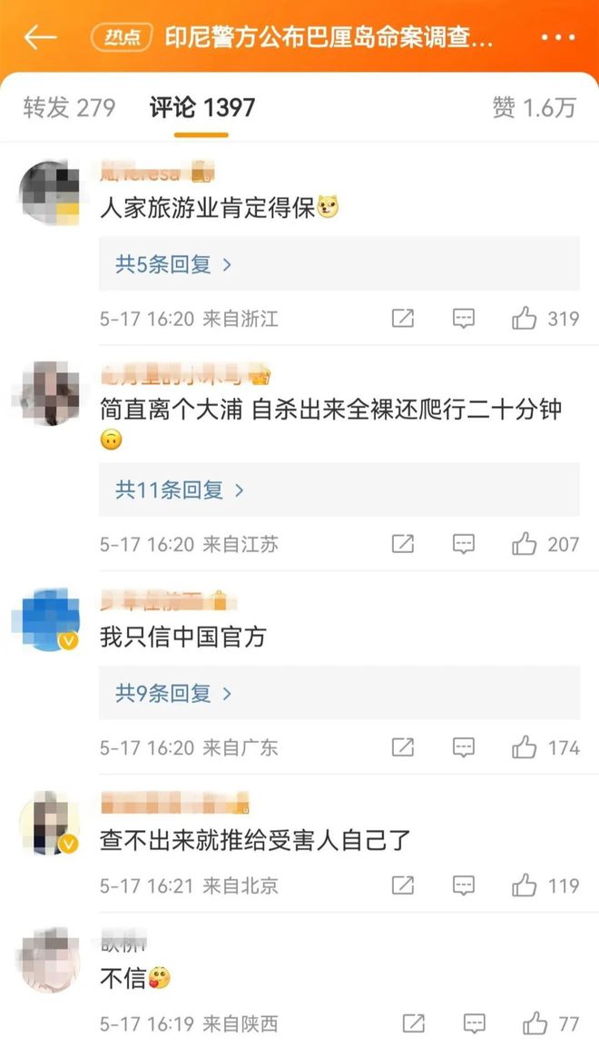 5月17日,据印度尼西亚媒体报道,当地联合调查组公布两位中国游客死因。调查组工作人员表示,得出的结论是,女方(程某)被其男友(李某)所杀,之后,男子(李某)用啤酒瓶刺伤颈部等部位自杀。