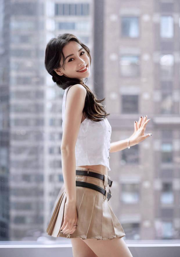 Angelababy窗边随拍 马甲短裙造型甜辣十足