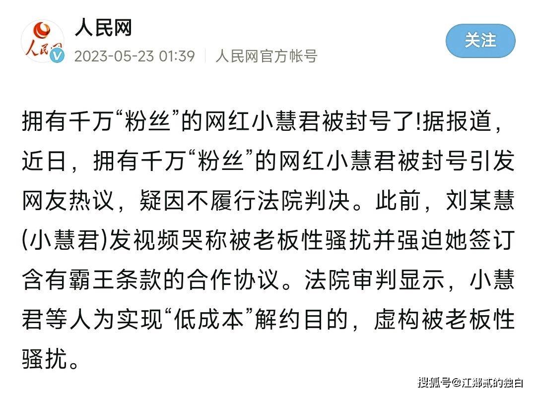 千万网红小慧君被封号,细数造谣性骚扰的低成本,人民网就此发声