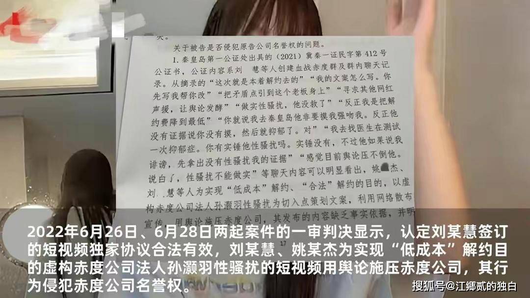 2020年,小慧君在网络发声,自称受到MCN公司秦皇岛赤度文化传媒有限公司(以下简称赤度文化公司)总经理孙灏羽的性骚扰。