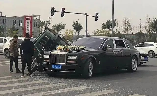 劳斯莱斯婚车与三轮车相撞 现场画面曝光,太惨烈了!