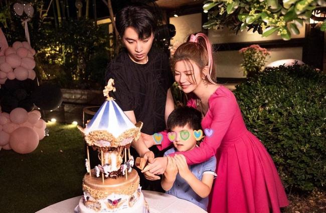 陈妍希和老公、儿子一起切蛋糕,画面温馨又幸福。