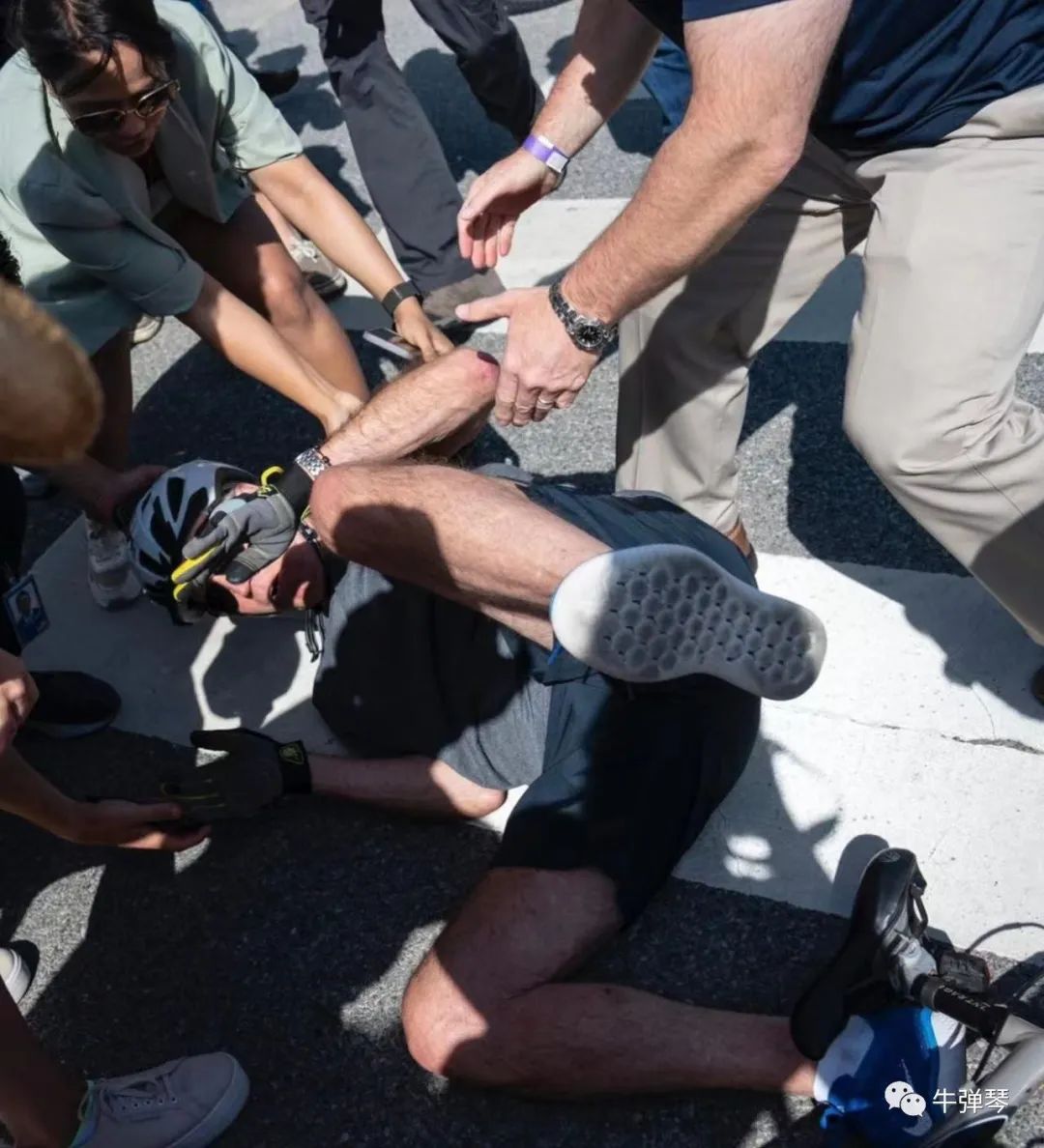 当然,这也不是拜登第一次摔倒。在当选总统后不久,和爱犬玩闹,狗没啥事,他把自己弄脚骨裂了。他上空军一号舷梯时,也曾摔倒过很多次。他回老家骑自行车时,也摔倒在地上。但确实,哪次摔倒,都没有这次摔得更结实,更狼狈,更万众瞩目。对拜登来说,祸不单行的是,摔倒在地上,他爬起来就行了。但另一种摔倒,可能很要命,但更无奈。