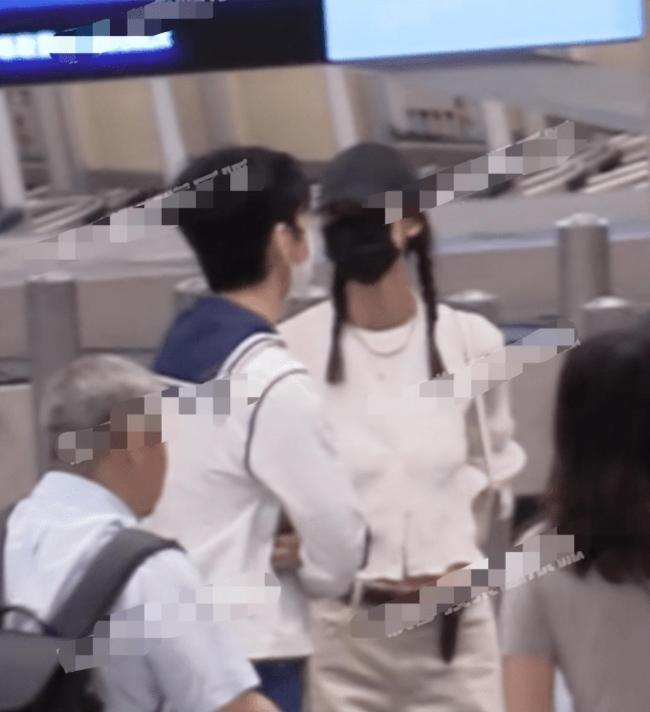 井柏然刘雯机场同框热聊 默契穿搭青春活力满满