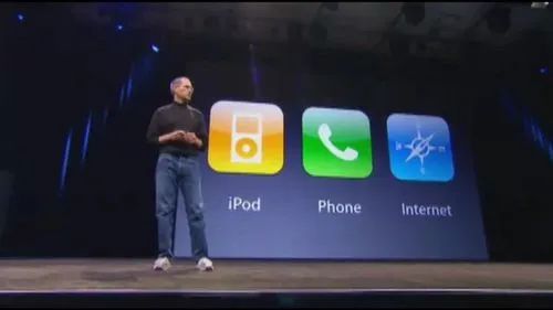 容说道:“在这两年半以来,我一直都在期盼着今天的到来。”乔布斯接着说:“一个革命性的产品总是能改变一切的。”接着,屏幕上出现了1984年发布的麦金塔电脑,乔布斯说,这不仅仅改变了苹果,也改变了整个计算机产业。接下来是2001年发布的iPod,乔布斯认为,它不仅改变了我们听音乐的方式,也改变了整个行业。介绍完两款革命性的产品之后,接下来就步入了当天的正题了。乔布斯卖了个关子,说道:“今天,我们将要一次性发布三款革命性产品!”