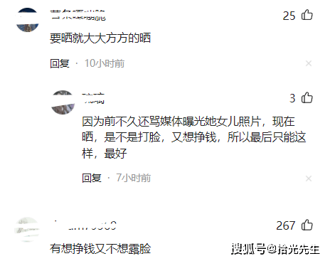 不少人都指责她“又当又立”“双标”,还有人吐槽她捂孩子脸的行为太做作,毕竟都已经带孩子出镜了,孩子的长相以前也曝光了,就不能大大方方的露面吗?