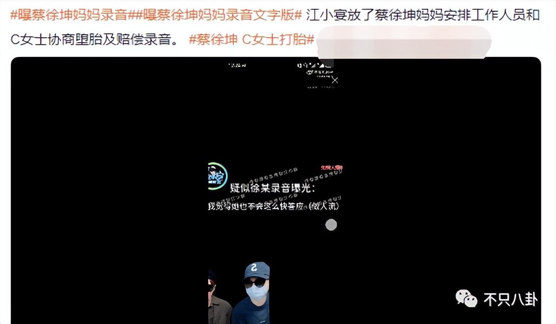 另外,狗仔还放出了一段疑似蔡徐坤妈妈安排工作人员和C女士协商堕胎及赔偿录音↓