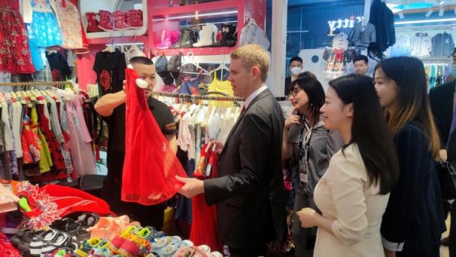 希普金斯在6月25日抵达中国进行正式访问,并计划出席27日在天津举行的第十四届夏季达沃斯论坛,在前往天津之前,他与随行人员来到秀水街,开启购物之旅。他在秀水街收获了包括mark cheung、劳伦斯·许、宝盛藏等代表中国智造、中国设计的设计师作品,同时为一对儿女选购了熊猫玩偶和中式童装,留下了愉快的回忆。