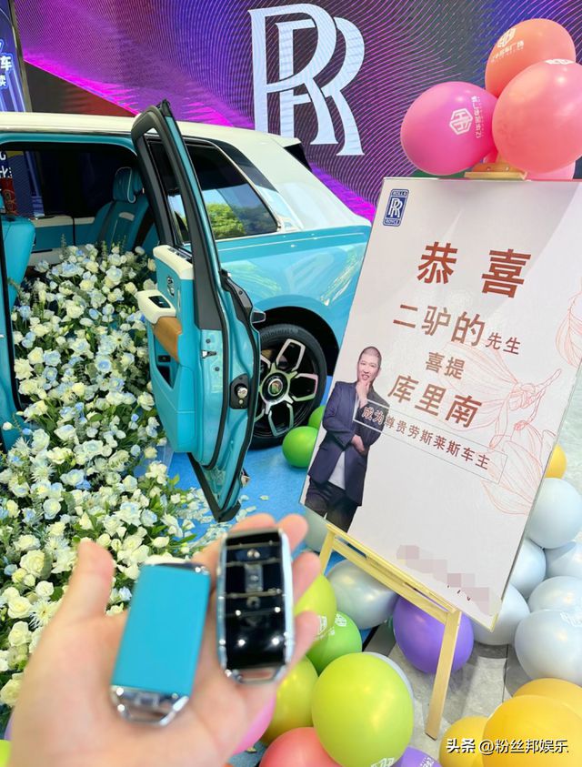 在近一个月二驴花费2000多万一下子购买了两辆劳斯莱斯,其中一台蓝白配色的劳斯莱斯库里南花费900多万,是二驴送给老婆平荣的生日礼物。