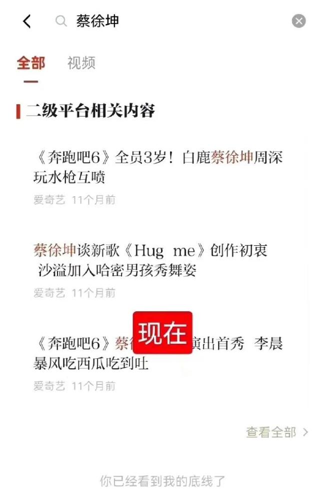 在央视网输入蔡徐坤,也显示:抱歉,没有找到“蔡徐坤”的相关视频结果。