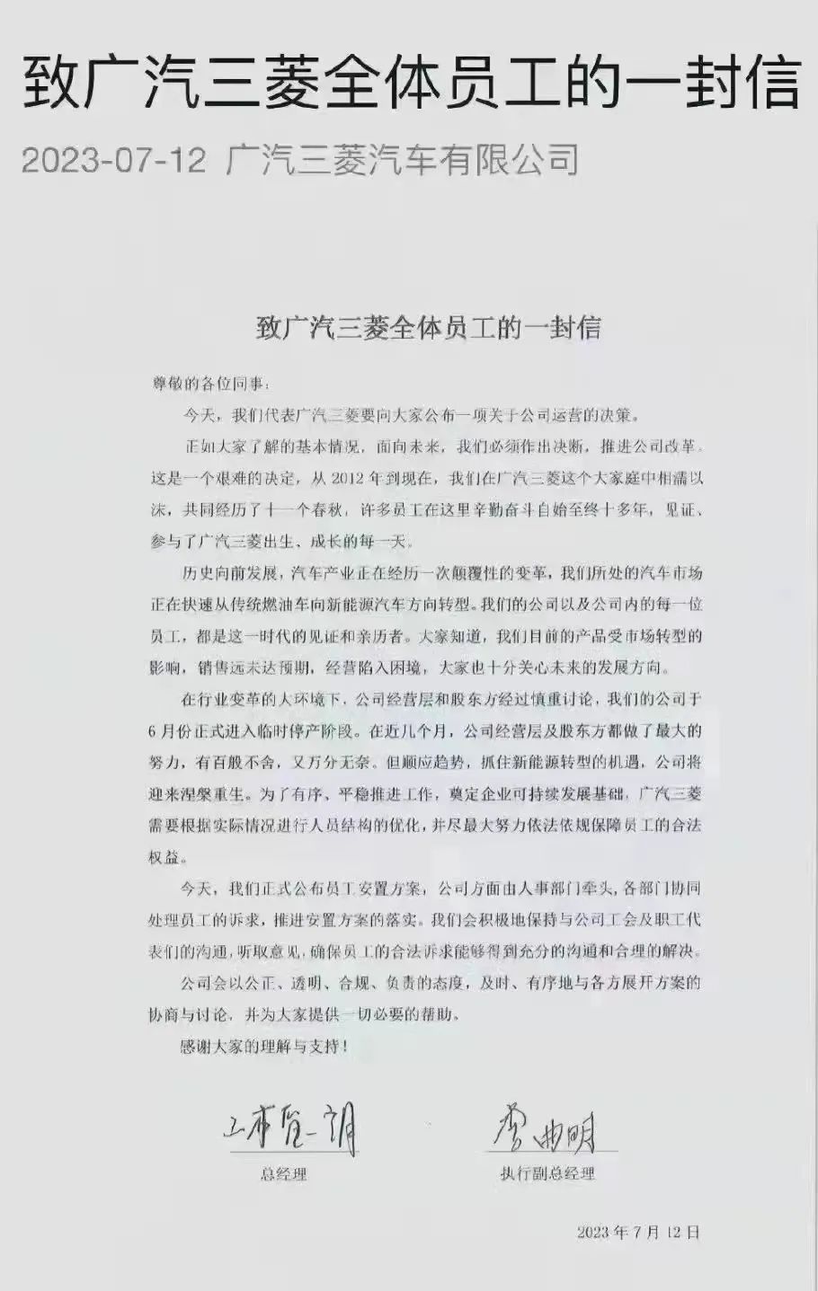 现在,“临时停产”也是一个博大精深的词了。这就跟临时停工一样,主要目的是把员工的工资给停了。为什么三菱汽车会临时停产呢?一句话就可以说完了:卖得太差了。2023年前5个月,广汽三菱一共只卖了8943辆,月销1788辆。其中,产量更是低到只有3367辆,平均月产673辆。也就是说,卖出去的这8943辆车里,还有5576辆是去年遗留下来的库存车。从2020-2022年的三年间,广汽三菱的销量是一年不如一年,分别为7.5万辆、6.6万辆、3.36万辆,去年是遭到了断崖式下滑。在今年3月份的时候,三菱汽车就因销量太差,长沙工厂被迫停产。原本,三菱计划到6月份,恢复生产。可现在的结局却是,不仅长沙工厂没能复产,整个广汽三菱集团都停产裁员了。在刚刚过去的6月份,三菱一共仅卖了326辆。也不知道是哪326个冤大头,在广汽三菱即将停产之际,给自己配了一辆三菱汽车。广汽三菱面临的问题还不只是销量的下滑,它实际上已经来到资不抵债的边缘。截至2022年末,广汽三菱总资产59.61亿,负债总额59.53亿,负债率高达99.87%。为了抢救广汽三菱,6月21日,广汽集团决心对广汽三菱提供9.42亿元的委托贷款,日本三菱集团则提供另外的9.42亿元贷款,合计18.84亿。这笔资金注入,可以解决广汽三菱陷入资不抵债,破产倒闭的风险。在去年的9月份,广汽集团还曾对广汽三菱紧急输血15亿,试图把广汽三菱从ICU病房里拖出来。而今来看,这些操作都暂时失败了。为什么三菱汽车会走到这个地步?在燃油车时代,三菱汽车主打的就是硬派越野车,代表车型有帕杰罗和欧蓝德。可即便是燃油越野车,长城旗下的坦克系列也完爆三菱。坦克300日常月销破万,城市豪华越野车型也有更高级的坦克500。从今天去回望三菱帕杰罗、欧蓝德,就仿佛是上个世纪的产品。除了长城外,奇瑞主推的“探索”系列轻型越野车,在各项性能和配置上,同样完爆三菱帕杰罗。在新能源领域,三菱就更加地不占优势了。长城的坦克系列越野车已经完成新能源转型,搭载上了插电混动系统,比亚迪的方程豹也是蓄势待发。在奇瑞、长城、比亚迪三大中国本土车企的围剿之下,三菱可以说是岌岌可危了。偏偏三菱还没有轿车业务,越野车是一个小众市场,玩家越多,三菱死得越快。别看三菱发布的公告是“临时停产”,事实上就是进入“死亡倒计时”。中国的越野车市场变了,国产越野车崛起了。在三菱之前,主打越野车的美式广汽菲克集团,就已经退出中国了,于2022年底申请破产。在品牌声誉上,JEEP比三菱要名气大得多,可仍然是败退中国。三菱能坚持到现在,完全广汽和三菱两个大股东,还不愿意放弃,输血续命至今。在整个硬派越野车市场,国产车企已经占据绝对主导地位。未来,中国的越野车市场将呈现出三家分晋的形势:长城坦克、奇瑞探索和比亚迪方程豹。三菱的败退只是日系车大败退的一个缩影。今年6月份,丰田销量17.45万辆,同比下滑12.8%;本田销量11.31万辆,同比下滑19.8%;日产销量6.91万辆,同比大跌28%。更惨的是长安马自达,整个上半年只卖了3.22万辆,同比暴跌49.4%,堪称腰斩。为了扭转颓势,马自达主推的全新昂克赛拉直降3万,起步价降到了8.99万。其中,2.0L的版本才9.99万,彻底放弃了合资车的光环,与国产品牌贴身肉搏。这被视为马自达的搏命一击。但在我看来,马自达还真不一定能坚持多久。对长安集团而言,长安福特、长安马自达这类合资品牌都不那么重要。长安是中国国有汽车厂中,自主化水平最高的。在新能源转型方面,长安深蓝也进步神速,月销达到8000辆以上,破万只是时间问题。很多人说,百年福特,毁于长安。其实,这是因为长安汽车从一开始,就不打算依赖于合资,而是专注于自主品牌。日系车的大败退,不会是一蹴而就的,在华基本盘依然高达400万辆。但是,丰田、本田、日产的市占率下滑,则是大势所趋。在三菱败退后,下一个最危险的日系车品牌不是马自达,而是雷克萨斯。今年前5月,雷克萨斯销量大幅下滑24%,只卖了54131辆。在蔚来、理想、小鹏、腾势、极氪等国产新品牌的持续冲击下,中国人越来越不爱买雷克萨斯了。在未来的中国汽车市场,必然是以国产车为主导,合资车最美好的时代结束了。