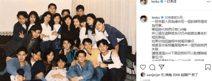 在三月份的最后一天,古巨基在个人社交账号上晒出了一张30年前还是训练生时期的合影,他们都是为了当演员而参加训练班的一群人,而古巨基发布这张旧照的目的就是想寻找照片上的这些人,希望大家能重聚,但很快有网友发现当年那一张旧照中似乎少了一个人。