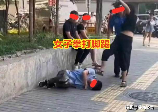 两人对司机拳打脚踢,一旁的交警和城管将二人拉开对他们进行劝阻,没想到女子挣脱开束缚,冲过去对着司机的下体猛地踢出一脚。
