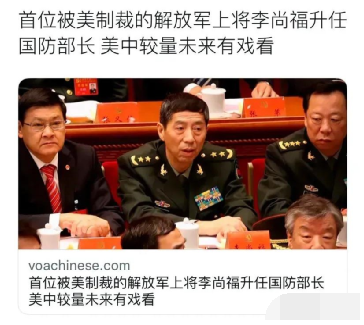美国连续派出那么多国务卿访问中国到底在急什么这个事暂且不管,但这次把基辛格都派出来访问中国这个事就离谱了。基辛格访华是国事访问,受到我国政要的隆重接待,肯定不是为了自己的私事而来,而是为了美国的公事。基辛格是我们中国人民的老朋友,为美国的事来中国无可厚非,但基辛格今年已经100岁了啊。一位足足100岁的老人,这个时候难道不应该在家里颐养天年么?美国就算有再多的国事,难道不能交给其他七八十岁的小伙子来做么,非要让一位100岁的老同志跨越半个地球劳苦奔波?很明显,肯定有什么事是那些七八十岁的政客们搞不定但又必须去做的,这才把基辛格请出山。基辛格是我们中国人最具好感的美国政客,这一点美国人也非常清楚,在如今美国总体普遍反华的情绪下非要请百岁老人基辛格出山来访问中国,到底是所为何事?如果美国愿意让步,那随便派个外交人员也能把自己的条件送到中国来,甚至打个电话都能沟通,所以请基辛格出山来中国肯定不是因为美国降条件了,而基辛格也不会大老远的跑来帮那些反华政客们压中国。所以和谈条件是没关系的,基辛格亲自来中国的最主要目的是为了见什么人。而布林肯来中国的时候,我们中国给的规格是很高的,外交领域的重要领导人都见面的,甚至总书记都出面接见了。布林肯没见到的人,以及这次基辛格来中国第一个见面的人,是我国的国防部长李尚福将军。李尚福部长是首位被美国制裁的中国将军,被制裁时是中将。众所周知,美国的制裁黑名单都是精挑细选的,绝不会冤枉任何一个好人,很多时候敌人会比你自己还了解你自己,不成为美国巨大威胁的人没资格进黑名单。因此被美国制裁不仅没有损伤李将军丝毫,反而成为了其荣耀和军功章,被制裁后第二年就迅速被升为了上将,并在2023年升任国防部长,成为了一名被美国制裁的中国国防部长。在李部长升任前,面对美国的多次挑衅,为最大程度的威慑美国,让美国摸不透中国军方的底牌,遏制美国的继续挑衅,我国的国防部长魏凤已经有几个月拒绝接美国军方的电话了。等李部长上任后,因为身上背着美国制裁的身份,名列美国的黑名单,那就更加顺理成章的拒绝和美国军方的一切交流。我在你们美国的制裁名单里哎,是黑名单里的人,你身为美国高官和我交流不太好吧,我怕你被美国官方误解为卖国贼。中方表示交流可以,必须解除对李将军的制裁,否则拒绝任何交流,你们太没诚意了。美国则表示绝不可能解除对李将军的制裁,但被美国拉黑的李将军必须要和美国军方会谈,我有没有诚意这个事不耽误你们李将军出面和我们对话。是你拉黑我,不是我拉黑你,我都被你拉黑了怎么和你聊天?但美国人不管这个,非要在拉黑李将军的同时和李将军聊天。2023年6月,我国防长李将军出席新加坡香格里拉会议的时候,明确拒绝和美国防长的会面,但在晚宴环节时美国防长奥斯汀非要跑过来和我国防长李将军握手。出于礼貌,李将军和奥斯汀友好的握了手,但因为担忧奥斯忊和被制裁的中国将军交流公务会遭到美国法律的惩罚,因此没有和奥斯汀进行任何实质性的交流。五角大楼和多名高级国防官员均表示,握手不能取代有意义的交流,希望能和中国军方进行严肃和实质性的对话。美国文官是整个美国最主战的人,坚持对李将军的黑名单制裁,连这点面子上的让步都不同意。而美国武馆是整个美国最主和的人,明知道李将军是被文官体系拉黑制裁的人,也竭尽全力的创造一切机会去和李将军对话。正常来说都是武官主战文官主和,因为武将只有在战争中才能获得军功,而文官并不能从战争中得到太多好处,等战争结束了收拾烂摊子的活反而都是文官去做,武官不管。正常的情况一定是如此,除非武将一开始就知道打不赢,才会反对文官嘴炮开战捞声望的做法,但一个王朝如果出现这样的情况,基本也都离灭亡不远了。所以美国这种情况是很罕见的,放眼所有国家的历史中那都是罕见的,大国小国都不会出现武官主和文官主战这样的奇葩现象,仅有大国衰落这种特定现象时才有可能诞生。中国以前也有极短时间出现过文官主战武官主和的情况,时间是清朝末期。而现在的美国文官那个傲气啊,比美国当年最辉煌的时候还要傲气,说话那叫一个硬,怎么硬怎么来。今年3月13日,李将军升任我国防长职位时,美国国务院发言人普赖斯在回答“国防部长奥斯汀将如何与受美制裁的中国新任国防部长李尚福见面”的记者提问时说:美方准备在符合美国利益的情况下和李将军进行进行接触。