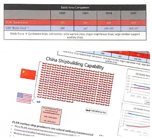或许是真的担心阅读此份图表的“观众”们不明所以,因此可以看到的是在接下来的统计中,美国人竟然直接干脆的表示当前已经占据了全球40%造船市场份额的中国造船厂,拥有巨大的军事转换潜力!