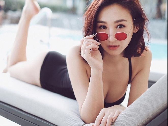 董璇泳池旁喝椰子水好惬意 穿优雅礼裙身姿曼妙