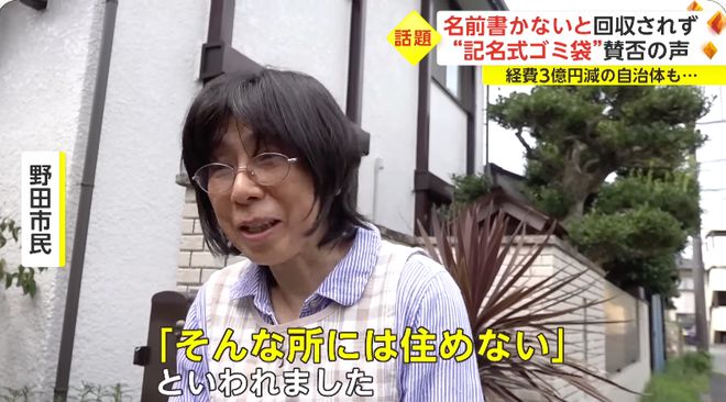 野田市民A:“在各自遵守礼仪的基础上,写上(名字)的话,垃圾分类方面大家会更有自觉性的吧”