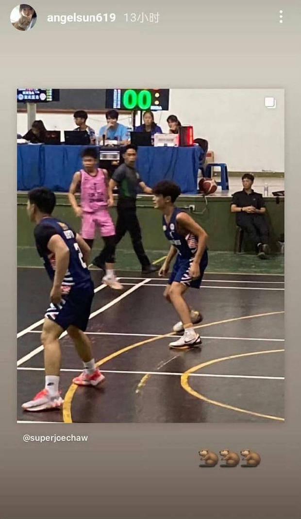 贾静雯大女儿梧桐妹在社交平台分享曹格儿子Joe打球时的照片。