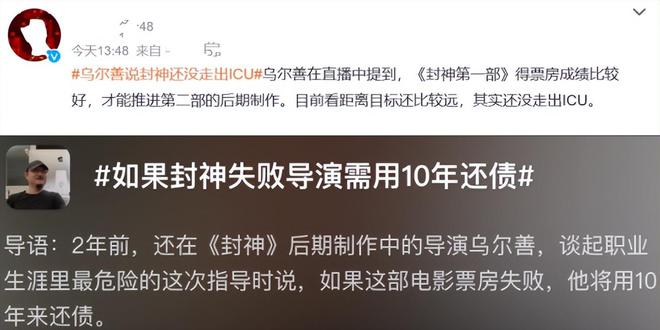 按理来说这成绩算不错了,制片方应该高兴,但是导演乌尔善在采访中却丝毫不见欣喜,反倒依旧害怕第二部难产,还说如果《封神》扑街了,那么他接下十年都需要用来还债。不过现在看来,乌尔善导演完全不用担心这个了。