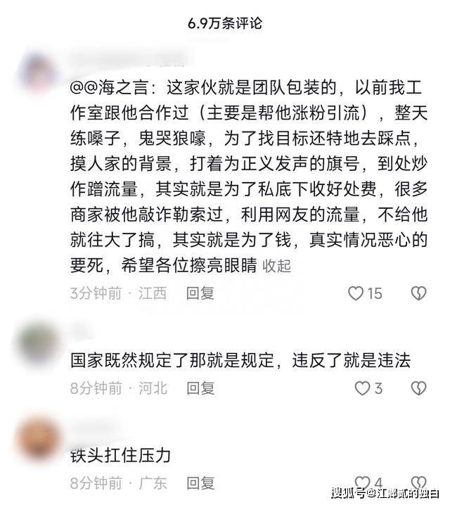 有个网友的说法令人眼前一亮,他说出铁头的行为是为了涨粉,此前和他合作过项目,先收集证据,然后向商家索要好处,否则就采取曝光的方式,希望大家擦亮双眼。
