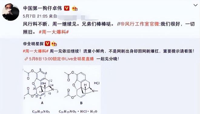信息中配图是一张化学分子式,也就是DP,当时很多人猜测正是因为网剧《余罪》而爆红的张一山,张一山方随后也否认了这一事情,但是因为卓伟随后并没有进一步的消息,此时也不了了之