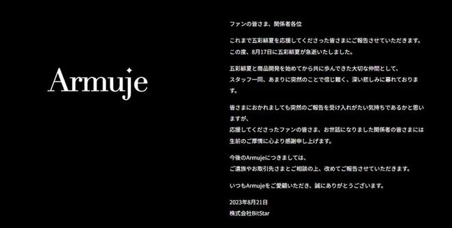 五彩緋夏时常分享美妆资讯,尤其是妆前妆后的反差萌,让五彩緋夏拥有高人气,还经营个人品牌,16日才更新影片,17日就骤逝,另粉丝们难以接受,所属事务所也发声明证实死讯,今后五彩緋夏的社群帐号、美妆品牌所属,事务所会与家属讨论后再对外公布。