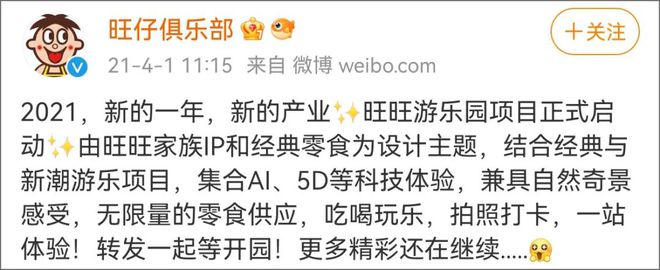 旺旺建主题乐园,其实在两年前就有端倪,不过由于消息发布的时间基本都是愚人节当天,好多人怀疑旺仔大概是在开玩笑。