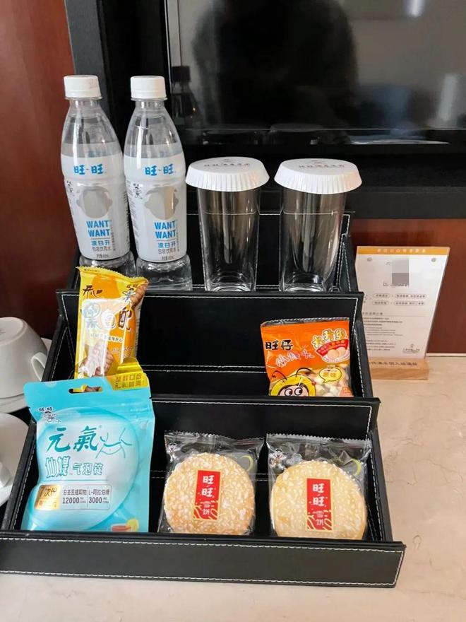 房间内除了必须的日用品,还会免费配有各种旺旺零食,吃完之后阿姨收拾房间时会自动补上。