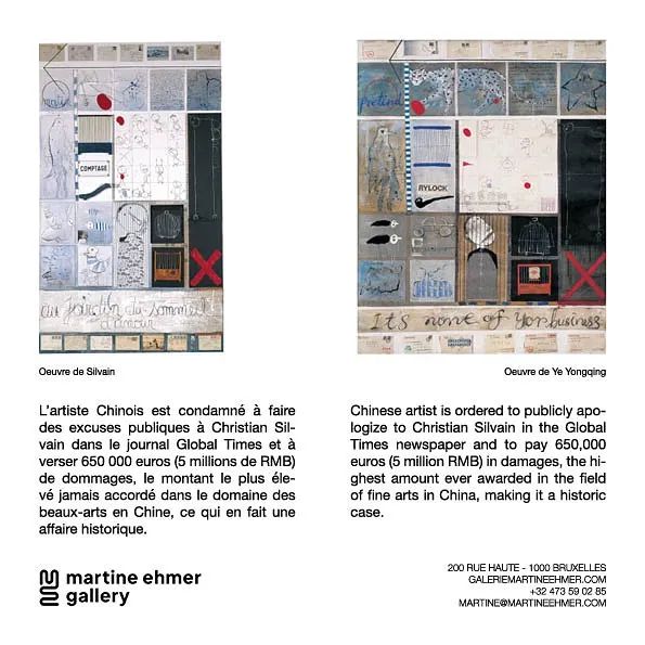 今年8月22日,北京知识产权法院就该侵害著作权纠纷案做出一审判决:叶永青立即停止涉案侵权行为;叶永青在「环球时报」发表致歉声明,向原告西尔万赔礼道歉,消除影响。叶永青支付原告西尔万赔偿金人民币500万元;驳回原告西尔万的其他诉讼请求。