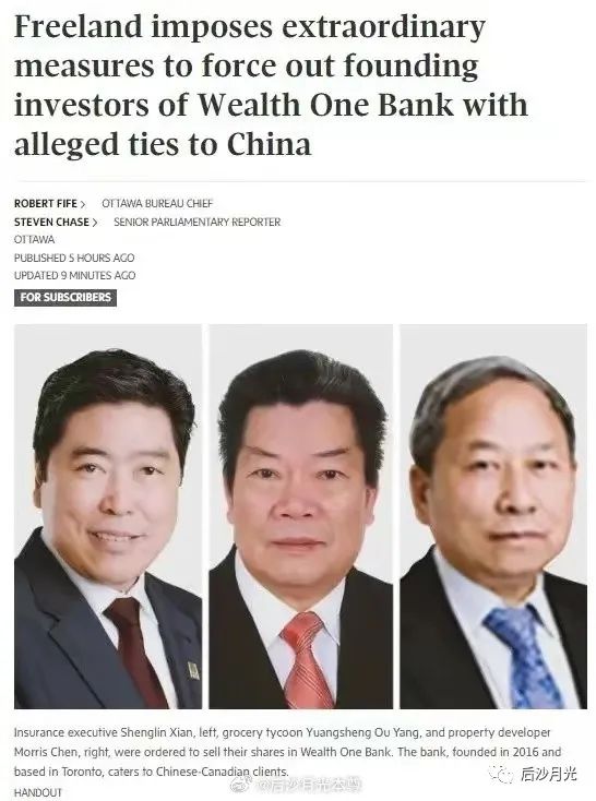 9月初,加拿大金融界出了一件令人惊掉下巴的事,加拿大“第一财富银行”三位华裔创始人,包括总裁咸生林在内,竟然被加拿大政府勒令出售其所持有的全部银行股份。